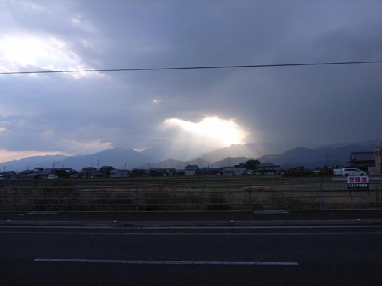 壬生川のホテルを出たときは晴れていたが、途中で雲行きが怪しくなってきた.雲の動きが速く、いつの間にか向こうの山がすっぽり雨雲に覆われてしまった.興隆寺がある山の辺りも雲に覆われて見えなくなっていた.今治小松自動車道を越えた辺りでポツポツと雨が降り出した.近くのコンビニに避難して暫く雨宿りすることにした.