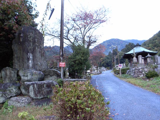 久妙寺で30〜40分程雨宿りをしていたが、雨は上がりそうもなかったので興隆寺へ向かうことにした.周りを畑に囲まれた緩やかな坂道の車道を上がっていくと西山興隆寺と刻まれた石碑があり、その先に六角形の小さなお堂が建っていた.興隆寺の檀家さんの墓地のようだった.ここから興隆寺までは1km位はありそうだ.この辺の山全体が興隆寺の敷地なのかもしれない.