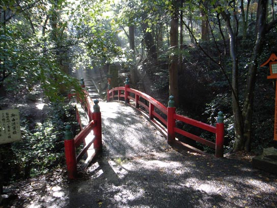 参道の入り口に着く頃には雨は上がり、青空が見えるようになっていた.小さな川に掛かっている参道へ続く真っ赤な橋(御由流宣橋と名付けられていた)を渡り、興隆寺へ続く風情のある参道を上って行った.