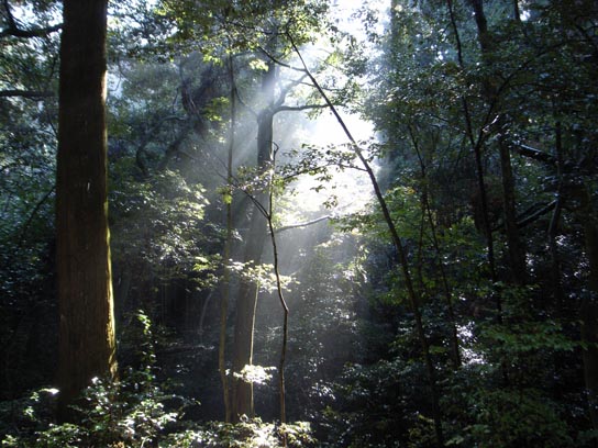 この興隆寺の参道も私の好きな参道で、雨に濡れた木々の葉っぱが太陽の日差しを浴びてきらきらと輝いていた.雨上がりの水蒸気が木漏れ日の光を受けてくっきりと光線のシルエットを映し出している.何とも神秘的で美しい光景だった.