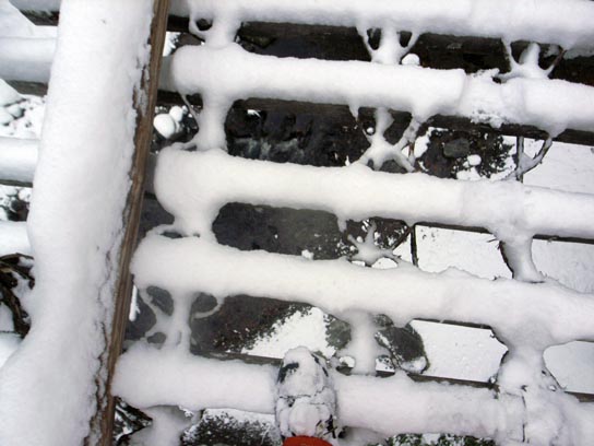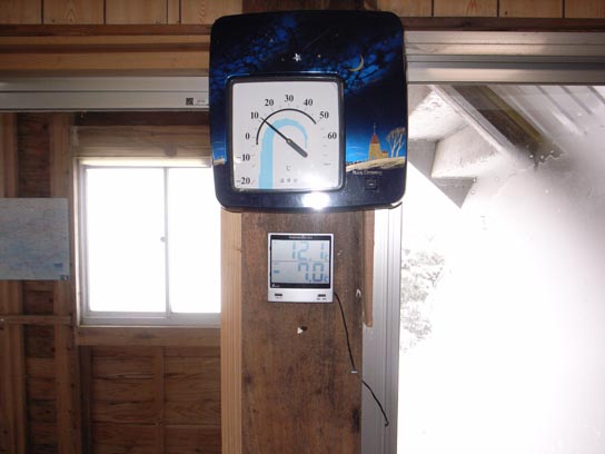 朝目が覚めると窓は霜で真っ白になっていて外の景色は何も見えなかった.窓枠が完全に凍り付いていて窓を開けることができないので、1階まで降りて外の様子を確かめに行った.外の気温はマイナス9度、ひっきりなしに雪が降っている.今朝の最低気温はマイナス12度まで下がったという.今朝は山だけではなく池田でも雪が降っているという.