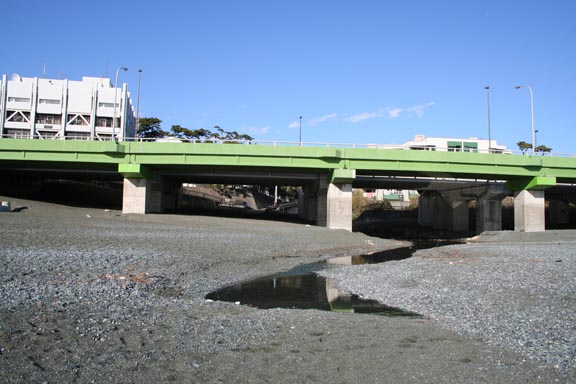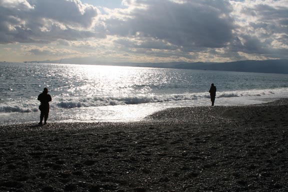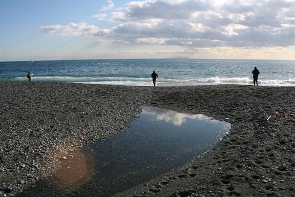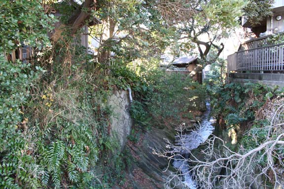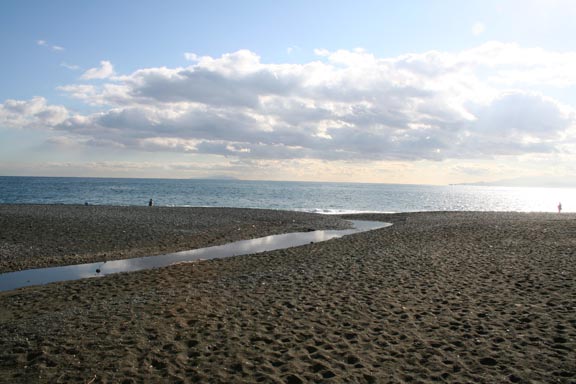 この日は三連休の中日ということもあり、私が居た30分程の間にも数組の拝観客が訪れていた.鴫立庵を後にして小さな沢が流れ込む直ぐ先の海岸へ向かった.現在では西湘バイパスが海岸を覆うように建ちそびえていて、とても鴫が飛び立つような海岸の光景ではないが、冬の午後の柔らかな日差しが心地良かった.