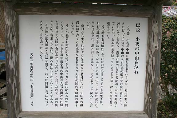 西行がこの地を歩いたのは、若い頃に陸奥の歌枕の地を訪ね歩いた時と晩年に平泉の藤原秀衡を訪ね時の二度だという.二度目にこの小夜の中山を越えた時、西行は既に69歳に達しており、決死の覚悟で陸奥へ赴いたという.
