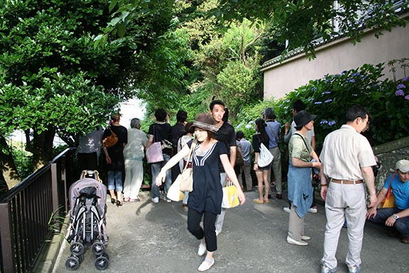 鶴岡八幡宮の境内にある綺麗な池では蛍を育てている(放しているだけ?)らしく、夜遅くまで蛍見物の人だかりができていた.淡い緑色の光が暗闇の中を乱舞していた.