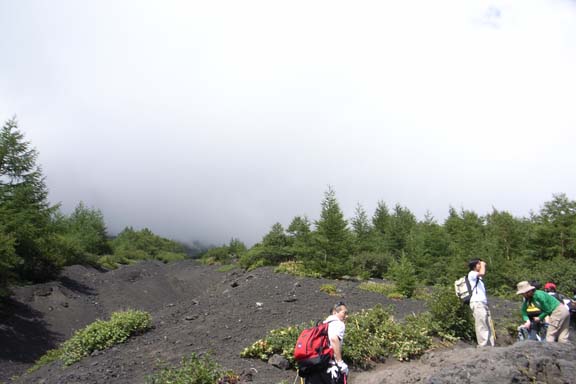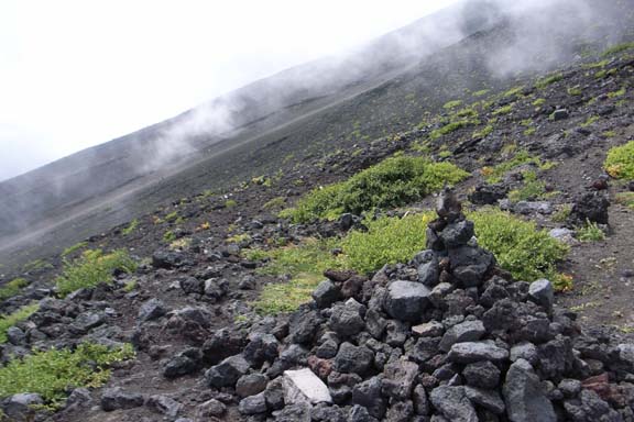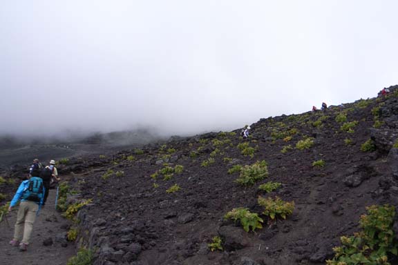 午前9時に須走口新5合目から登り始めたが、火山灰と溶岩の登山道は滑りやすくかなり難儀した.午前中の天気はまあまあだったが、天気は下り坂だったのでこの先麓の雄大な景色を眺めることは期待できそうにもなかった.