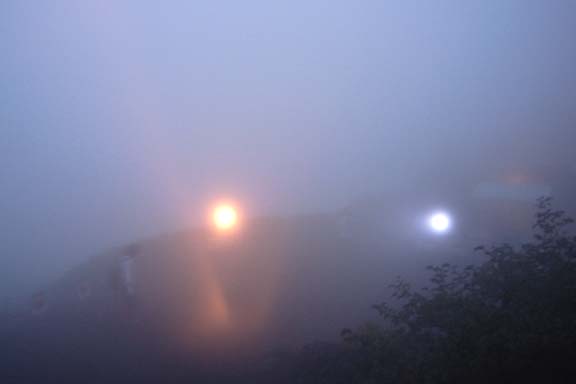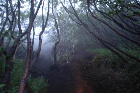 下山は頂上から2時間もかからずに新5合目の登山口まで辿り着くことができたが、途中の砂払5合目の吉野屋(売店)に着く頃には夕暮れと雨交じりの濃霧のため殆ど何も見えない状態だった.特に砂払5合目から新5合目の登山口までの下山道は足場の悪い樹林地帯を下りて行かなければならず、懐中電灯やヘッドランプなしでは到底歩くことはできない状態だった.