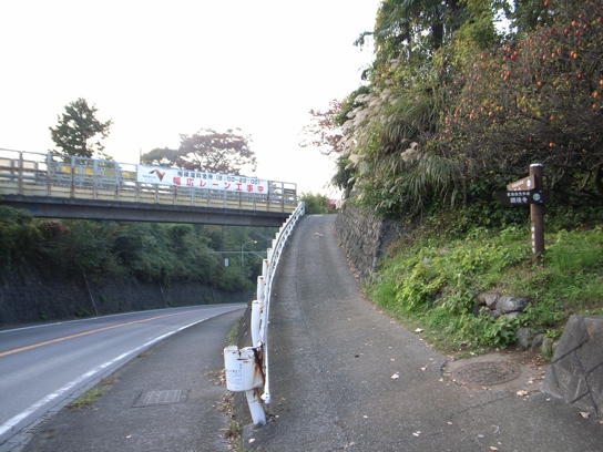 無線のパラボラアンテナ施設が目立つ城山の頂上にはお茶屋さんがあり、多くのハイカーで賑わっていた.こちらの方は高尾山よりも幾らか紅葉が色付いていた.頂上から相模湖方面へ向けて一気に急な斜面を下りて行った.山を下りると千木良という所に出た.ここから一旦渓谷の谷間まで下りて行き、相模川に掛かる弁天橋を渡り、再び谷を登ることになる.津久井養護学校の脇を通り過ぎ、相模湖駅方面へ向かって車道を歩いていると、道路の左手に嵐山方面へ向かう登山道が付いていた.夕暮れまでにはまだ時間があったので、相模湖駅には向かわずに、そのまま東海自然歩道のコースである嵐山を超えて相模湖ピクニックランドまで行くことにした.