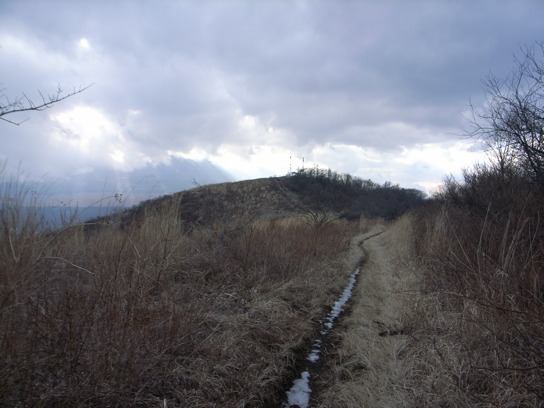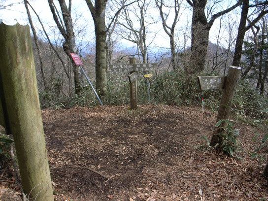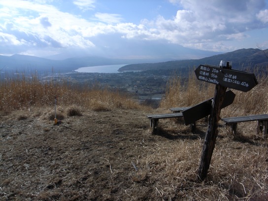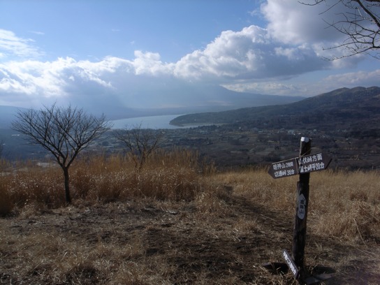 午後1時に大棚ノ頭を後にして高指山へ向かった.緩やかなアップダウンは有るものの道は歩き易い.迷い易い箇所は殆ど無いのでヘッドライトの明かりを頼りに歩けたかもしれないが、暗闇の中を歩いていても歩いた気がしないのでやはり昼間に歩くべきだろう.25分程で高指山の頂上に到着した.頂上の周りは殆ど木が生えて居ないので絶好のビューポイントだった.山中湖越しに富士山を眺めることができるのだが、生憎富士山は雲の中に隠れてしまっていたのが残念だ.