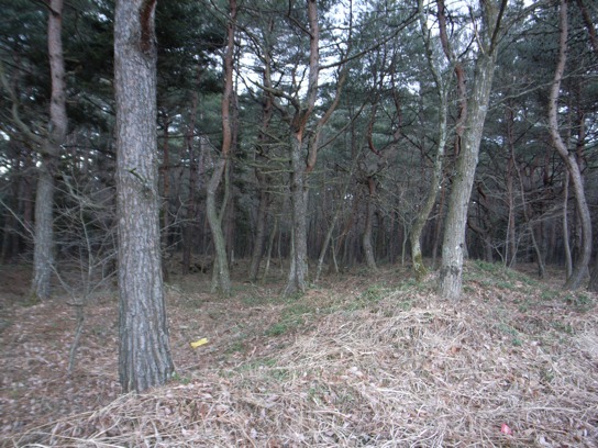 東海自然歩道は飯盛山、長池山を過ぎたところで登山道を右へ逸れ山を下って行き、忍野八海で有名な忍野村の内野地区へ出る.花の都公園の横を通り過ぎると、ハリモミ純林と呼ばれている樹海の中の舗装道路が続く.暫く舗装道路が続いたところで森の中の舗装されていない林道に入って行った.12月よりも日は幾分長くなったが午後5時を過ぎると流石に辺りは暗く、人気のない真っ暗な森の中を歩くのは不気味だった.暗闇の中を歩いていてもつまらないので、次回は忍野八海あたりから歩き直すことにして、とりあえず国道138号線へ出ることにした.