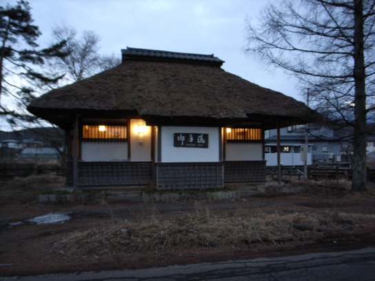 洒落た茅葺きのトイレ