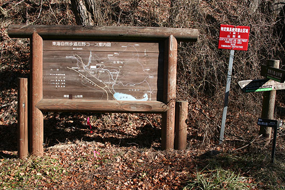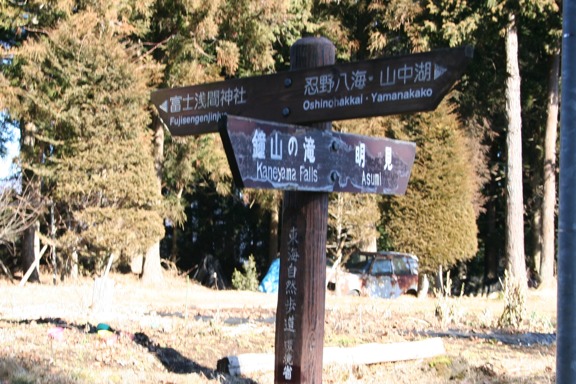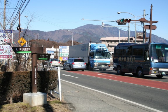 前回の離脱ポイントである忍野村のホテルベルから歩き始めることにしたが、とりあえず標識に記されている富士浅間神社の方向へ行ってみることにした.前回もここから道が分からなくなったが、どうやら今回も道を外れてしまったようだ.とりあえずバイパスと国道の合流地点まで行ってみることにした.バイパスの分岐地点に東海自然歩道の新しい標識を見つけることができた.やはり完全に道を間違えたようだ.本当のコースは鐘山橋を経由するのが正しいようだ.