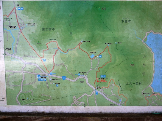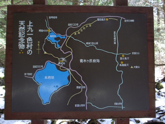 精進湖入口→本栖湖→県境(割石峠)→A沢貯水池→根原の吊り橋→朝霧高原→麓→陣馬の滝→小田貫湿原→田貫湖(→白糸の滝)[ 3/14 2010 ]