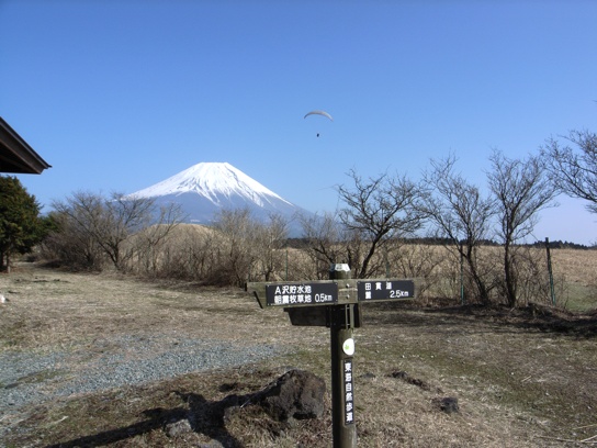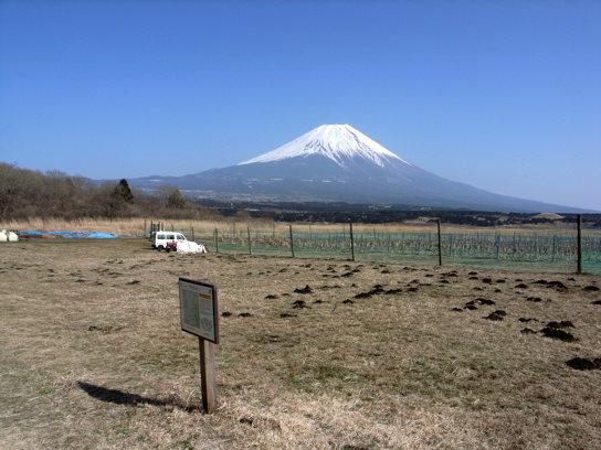 朝霧高原側からは富士山西側斜面の大沢崩れが良く見える.御殿場付近から眺める富士山東側斜面、富士吉田付近から眺める北側斜面とも違う別な顔を見せてくれる.一日中富士山を眺めながら歩いていたが、まったく飽きが来ないのは富士山ぐらいではないだろうか.
