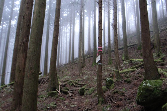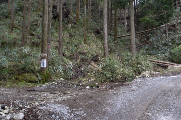 ここで林道を離れて田代峠へ向かう山道へ入る