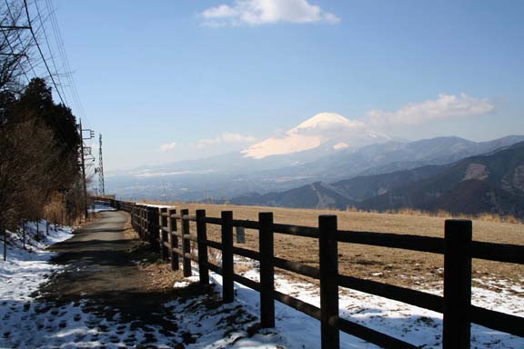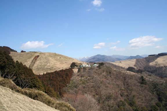 大野山は小さな子供連れや高齢者でも登ることのできる格好のハイキングコースとして人気があるようだ.もう少し暖かくなれば牧場に牛さんたちが放牧されているのだろうが、流石に牧草が枯れている今の季節は1頭の牛も見かけなかった.