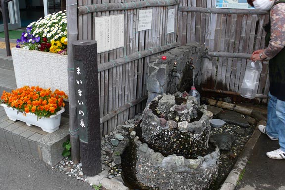 秦野駅へと向かう途中、公民館の敷地にまいまいの泉という湧水があり、地元の人達が水を汲みにきていた.