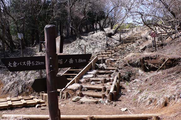 大倉尾根と合流するとそこからは多くの登山客で一気に賑やかになった.本来ならこの週末は丹沢まつりで今シーズンの丹沢登山の幕開けを告げるイベントが多数行われている筈だったが、震災による自粛で今年は中止になったようで、多くの山小屋は営業していなかった.