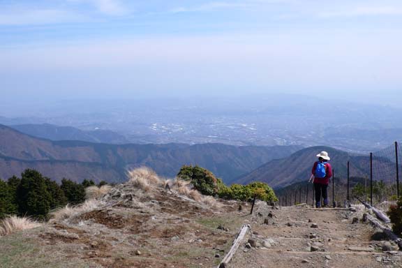 塔ノ岳は相変わらず多くの登山客で賑わっていたが、午後になると段々空気の透明度が悪くなりこの日は富士山がほとんど見えなかった.大倉尾根や鍋割経由で下りるのは飽きてしまったので、今回は趣向を変えて表尾根を岳ノ台、ヤビツ峠経由で蓑毛まで下りて見ることにした.登山道は丹沢のメインルートの一つだけあって整備されており、初心者でも比較的歩き易すそうな道だった.
