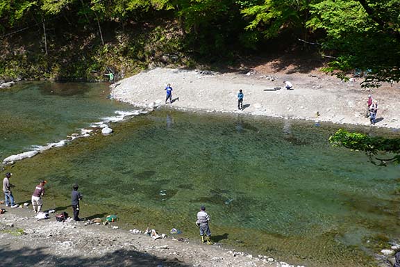 早戸川の中域には巨大な管理釣り場が設けられていて大勢の釣り客で賑わっていたが、上からみていると石の堰で区切られた沢山の区画に養殖された魚が黒い群れとなって泳いでいるのが見える.こんな環境で魚釣りをやっても面白くないと思うのは私だけだろうか...