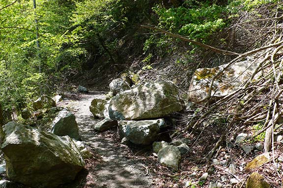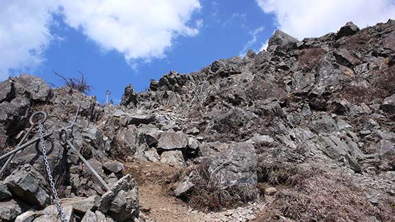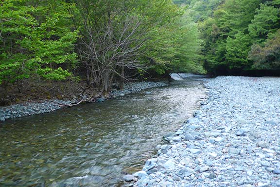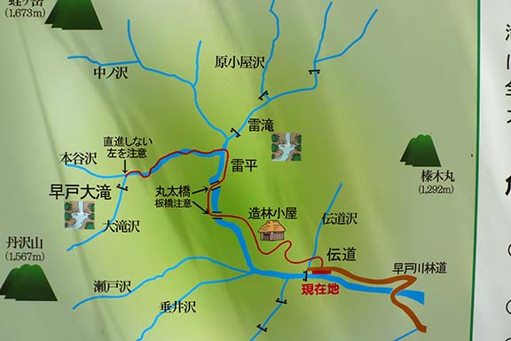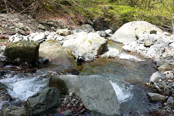 この道は標識がないので入口がとても分かり難いがそれほど困難な道ではなかった.ただ最後に早戸川を徒渉しなければならないので一般向けのコースではない.靴を脱いで川に入るが水はまだとても冷たかった.この日の川の流量は少なかったのでまだ渡ることができたが、もう少し流量が多くなるとこの川を渡ることは困難だろう.