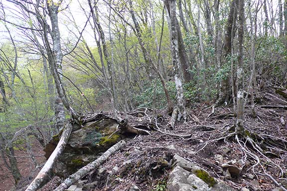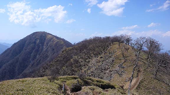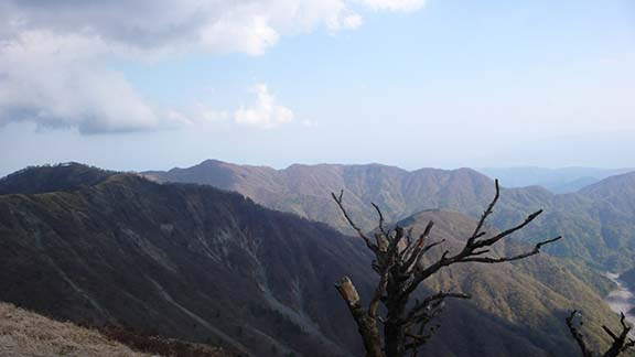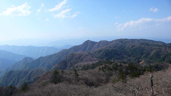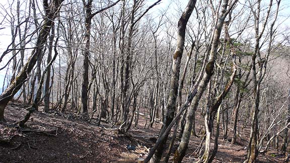 前回このコースを歩いた時はあまり視界は良くなかったが、今回は遠くまで見通すことができた.蛭ヶ岳の頂上付近からは宮ヶ瀬ダムがハッキリと見渡すことができた.もっとゆっくりしていたかったがこれからまだ長丁場の下山が待っているので少し休憩した後姫次方面へ下りて行った.頂上近辺の登山道はかなり荒れており、土砂が流出してしまった丸太の階段による障害物競走状態だった.途中の地蔵平や原小屋平付近のブナ林はまだ新芽が出たばかりで新緑の季節はもう少し先のようだ.