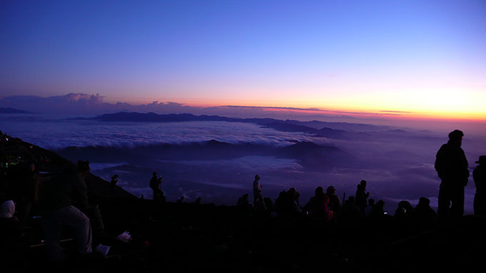 梅雨が明けたとは言え、まだ天気が不安定で山梨側では気温の急上昇による激しい雷雨、静岡側では湿った南風が吹き付けていて殆ど雲に覆われてしまっている.当初の計画よりも日程を後に1日ずらすことで何とか良い天候条件に持っていくことができた.土曜の夜はかなり混雑していたようだったが、日曜の夜はかなり閑散としていて昨年のような狂気じみた混雑には巻き込まれずに済んだ.
