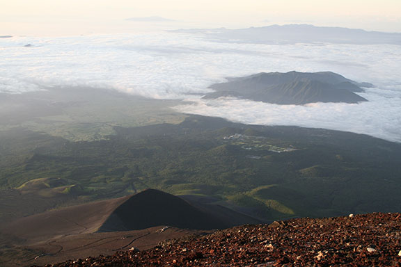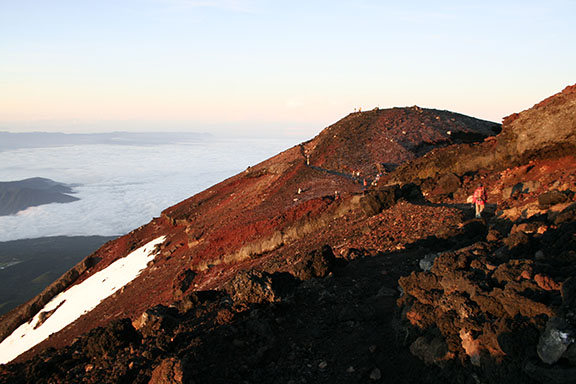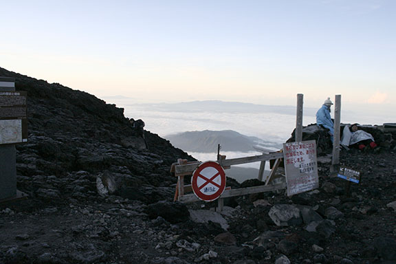 御殿場口の頂上の直ぐ向こうは富士宮口の頂上