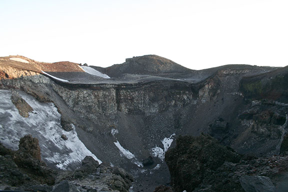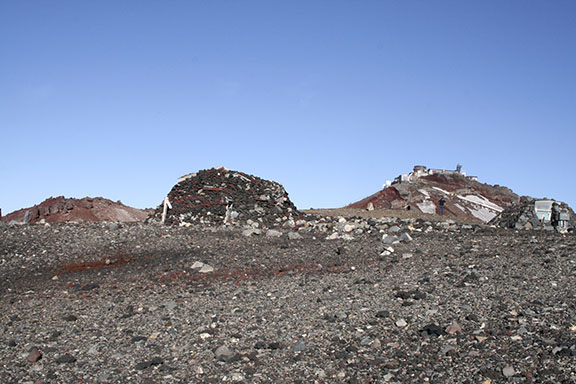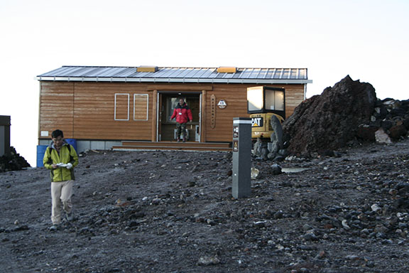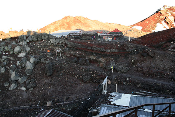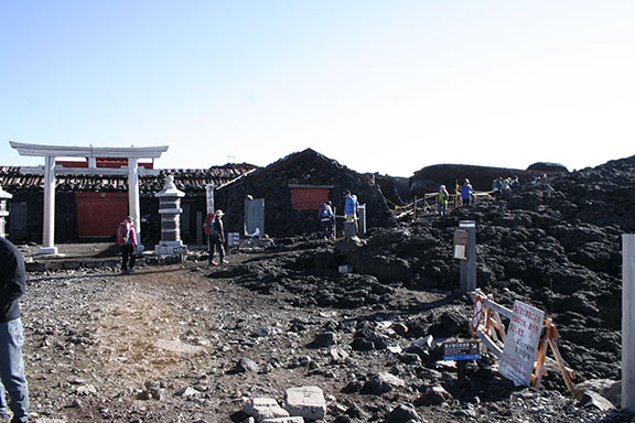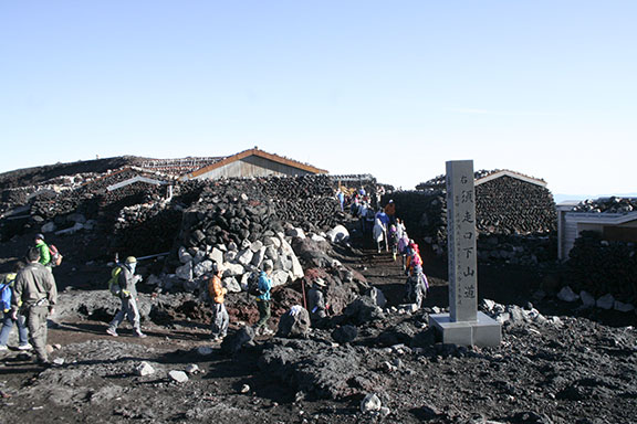 吉田・須走口の頂上に戻ると大部分の登山客は既に下山してしまったようで、いつもは人で溢れかえっている久須志神社や山小屋付近も今朝はのんびりしていた.朝食ブレークを取った後今回の下山ポイントの富士宮口へ向かった.