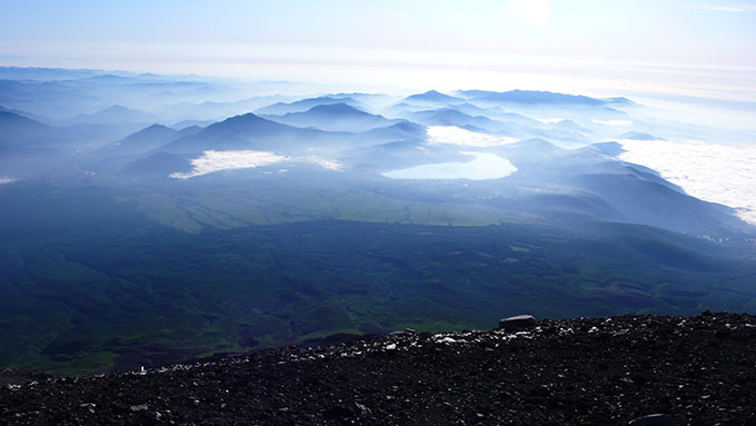 昨年は異常な混雑でお鉢巡りにも苦労したが、今回は空いていたのでのんびりと時計回りでお鉢巡りを楽しむことができた.大日岳で御来光を見届けた後、御殿場口、富士宮口の方面へ向かった.お鉢廻りの登山道は渋滞することもなくゆっくりと下界の景色を眺めながら廻ることができた.
