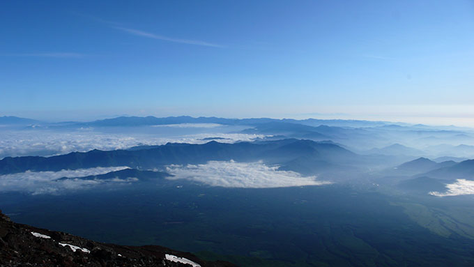 剣ヶ峰の展望台からは西側から北側へかけての展望が良く、富士五湖や南アルプスや北アルプスの山々などが見渡せる.富士五湖は雲の下で見えなかったが南アルプスの山並みは良く見えていた.残念ながら展望図を持ち合わせていなかったので個々の山の名前までを識別するだけの知識は無かったが、いつかはこれらの山々の頂から富士山を眺めることがあるだろう.