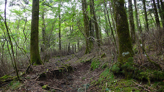 暫くは樹林帯の中の道が続く