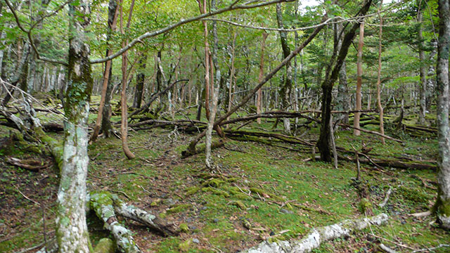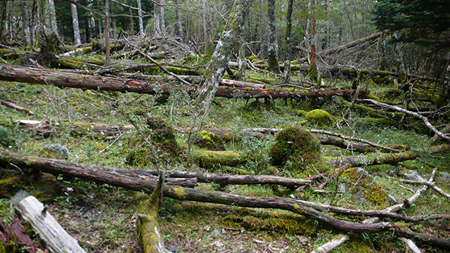 辺り一面倒木だらけ