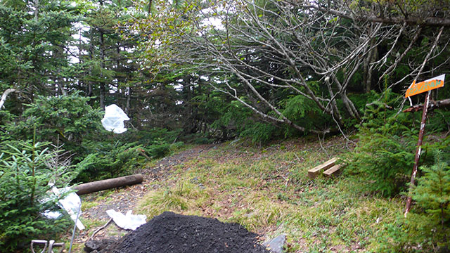 水ヶ塚からの登山道は整備されており歩き易かったが、登山道標識の分布が偏っていて所々標識が見つからずに不安になるような箇所があった.途中きのこ採りの人達とは結構すれ違ったが、登山客とすれ違ったのは数名程度だった.先日の台風で登山道はかなりダメージを受けたようで、御殿庭の下の部分は激しい雨裂で歩行困難だった.