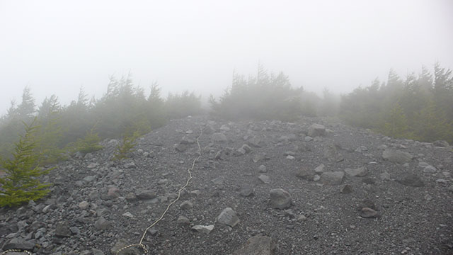 森林限界地点より上はガスの中