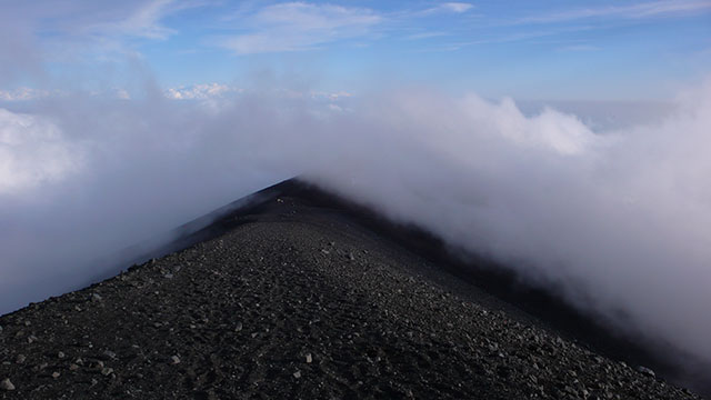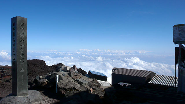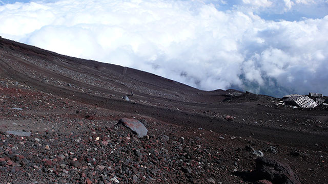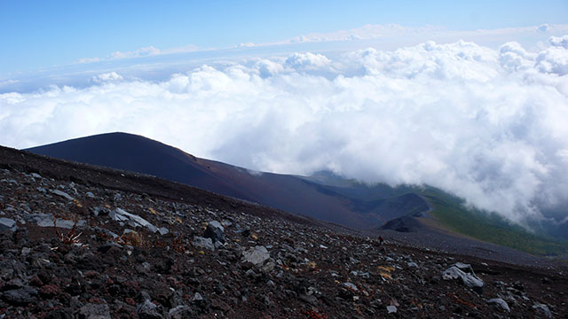 折角なので剣ヶ峰にもちょっと立ち寄って、夏期シーズン中には絶対味わうことのできない剣ヶ峰独り占めを堪能してきた.上り始めが午前11時と遅かったので今回はお鉢巡りはせずにそのまま御殿場口から下山開始することにした.