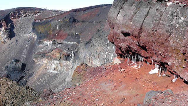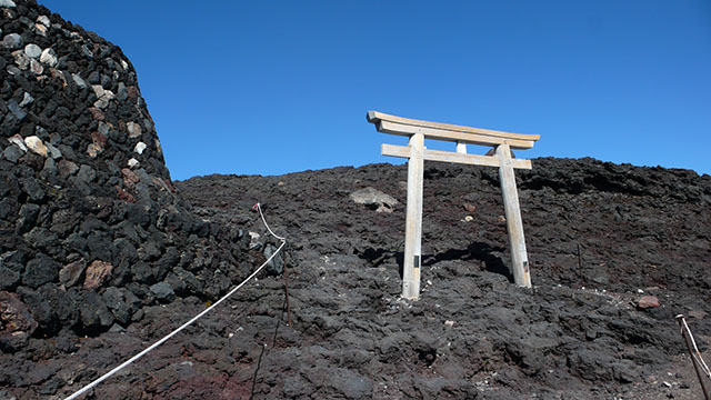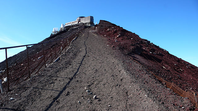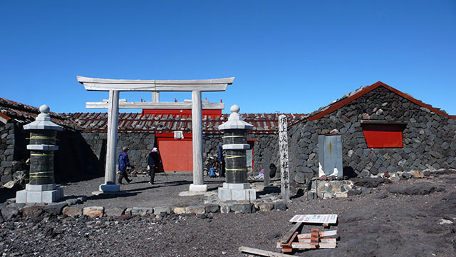 この日は気温が高く風も穏やかだったので、日中の登山であれば問題無く頂上アタックできそうだったので思い切って頂上まで行くことにした.思っていた以上に登山客は多く、登っている途中で数十人近くとすれ違った.夏場の混雑期には日中富士宮口からは登る気がしないが、混雑とは無縁の今の季節は快適な登山を楽しむことができた.富士宮口は足元が岩場でしっかりしていて最短距離で直線的に登る事ができるので、登山慣れしている人にとってはとても楽に登ることができるコースだろう.天候に恵まれたこともあり5合目から3時間程で頂上へ到達することができた.