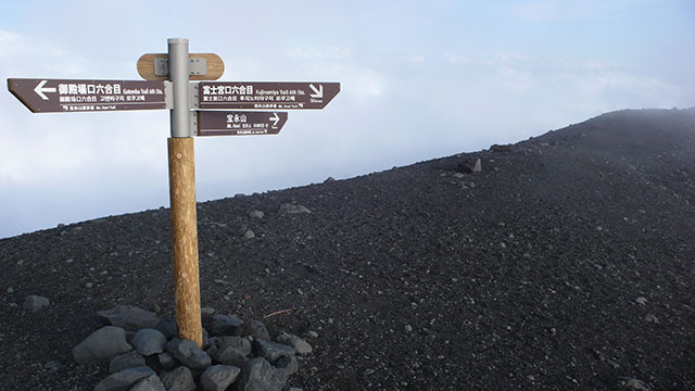 10月以降の富士登山は冬山や山岳登攀技術などを身につけたプロフェッショナルな人達だけが許される世界だ.夏場の登山シーズン中には親切な標識が沢山あるが、夏の登山シーズンが終わるとこれらの標識は撤去されてしまう.勿論トイレなど皆無だ.