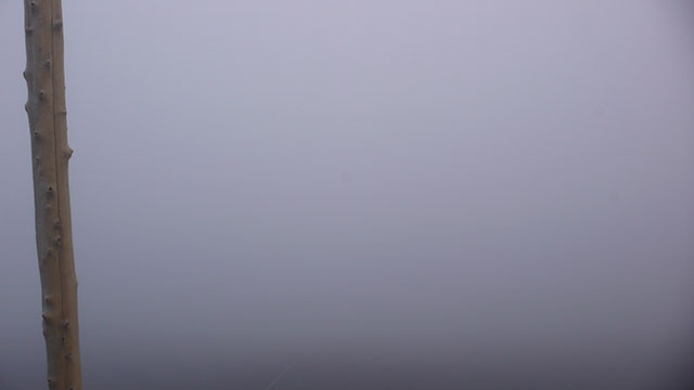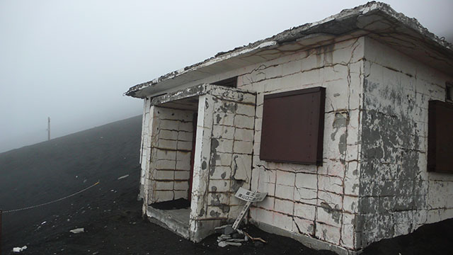 GPSロガーの表示が無ければ危うく気象庁避難小屋を通り過ぎてしまうところだった.気象庁避難小屋に辿り着いたものの、この濃霧では須山口下山道に入るのは完全に自殺行為に等しい.アウトドア用のGPSナビゲーターを持っていない限り須山口下山道を正しくトレースするのは不可能だろう.