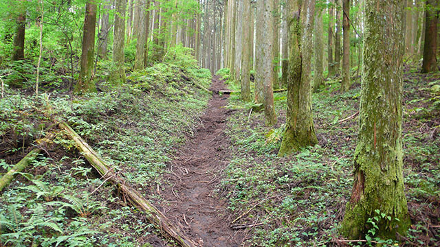 緩やかな植林地帯を抜けて行く