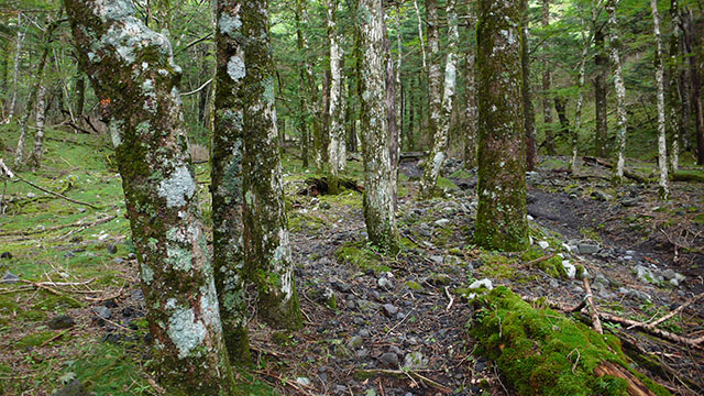 苔むした樹林地帯の中を登って行く
