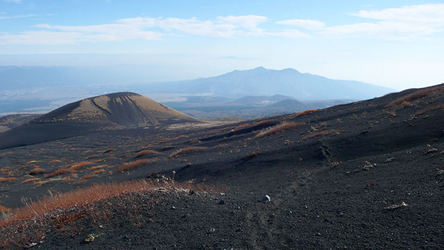 四辻(下り二合)から宝永山と頂上を見上げる