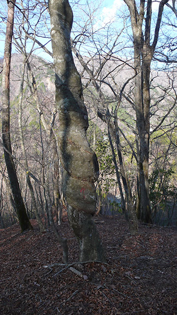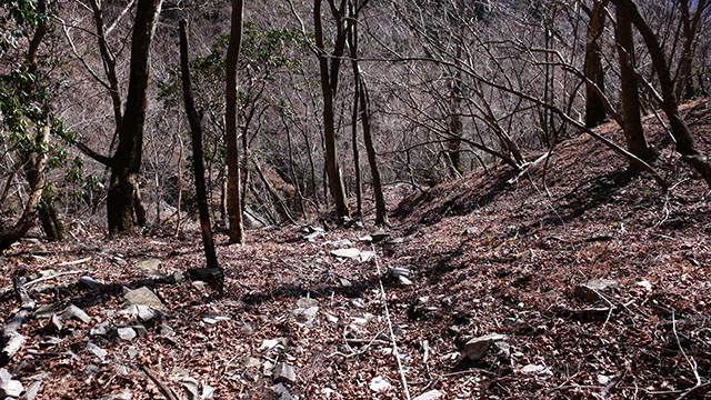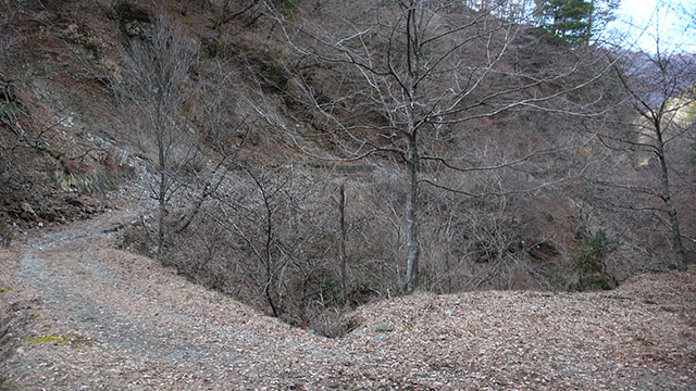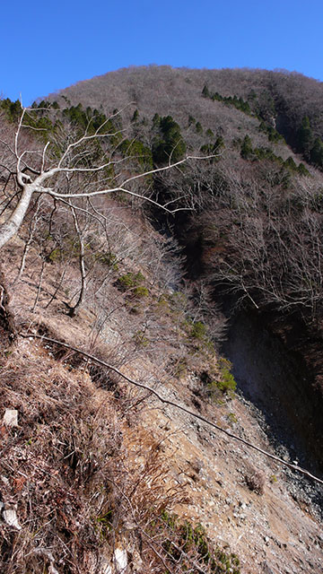 寄コシバ沢の様な滑落しそうな危険な箇所はないので、ユーシン方面から鍋割山への最短ルートとしての有用性は高いと言えるだろう.地形図に載っているルートは沢沿いに下るルートのようだが、今回私が歩いたのは尾根沿いのルートのようだ.Yahoo Japanの地図では沢沿いのルートが破線で表示されている.