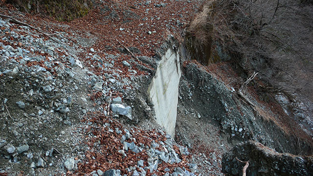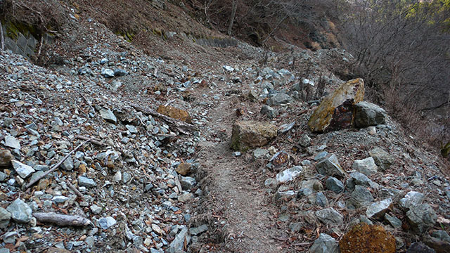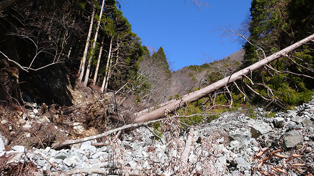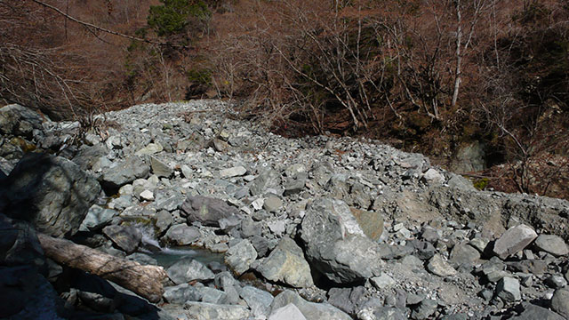 こんな丹沢の奥地まで巨大な砂防堰堤が何重にも設置されている.一体何のための砂防堰堤なのだろう.発電用のダムに土石が流入しないようにするためなのだろうか.造った人間の思惑とは裏腹に、崩れた大量の土石に埋もれて機能しなくなっている砂防堰堤を見るたびに悲しくなってくる.一度破壊されてしまった自然は元には戻らないだろうが、何百年、何千年も経る間に人間が施した愚行も自然の中で風化されて跡形も無くなって行くのだろう.