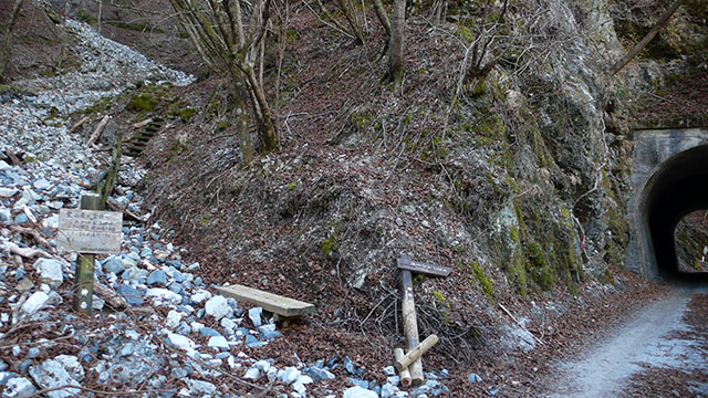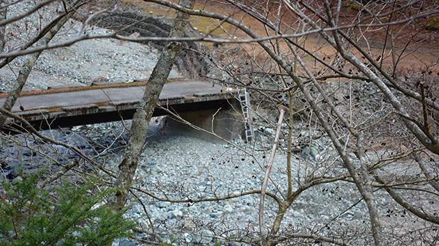 熊木沢出会いまでの林道は至る所崖崩れで歩くのもままならないような悲惨な状態だった.玄倉林道が閉鎖されている間に殆ど廃道になってしまったようだ.玄倉から熊木ダムまでは林道はきちんと整備されていたが、そこから先は全くの放置状態だった.主要な沢の砂防堰堤工事が終わってしまったので林道としての役目は終わっているので今更道が崖崩れで塞がって居ようが居まいが関係ないのだろう.