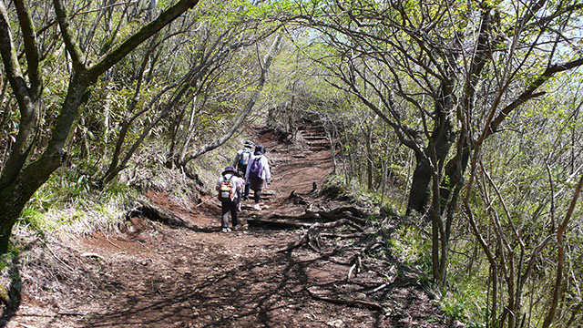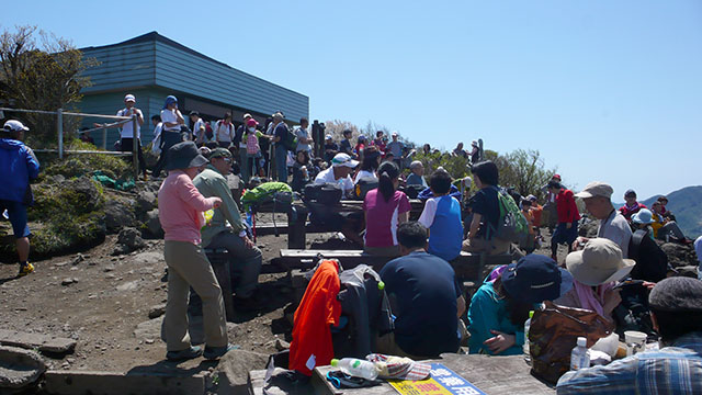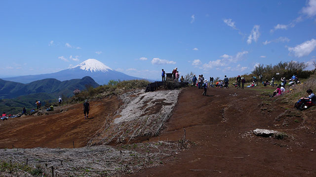 連休中でしかもまたとない絶好の天候に恵まれたので、人気の金時山は混雑していることを予想していたが、実態は混雑どころではなくて超過密状態だった.金時山の登山道は人の列が延々と続いて大渋滞を引き起こしていた.小さな子供連れがとても多かったので、狭い登山道でのすれ違いがとても大変だった.