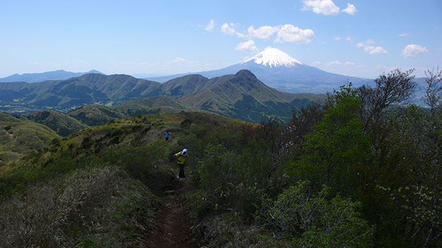 金時山の周辺はゴツゴツした岩場や急な斜面があり、山登りを楽しめるがそれ以外の大部分のコースは緩やかな稜線の上に設けられたとても歩き易い(走り易い)コースだった.この日もトレイルランニングの練習に大勢訪れていた.箱根外輪山はトレランの入門コースとして最適なのかもしれない.