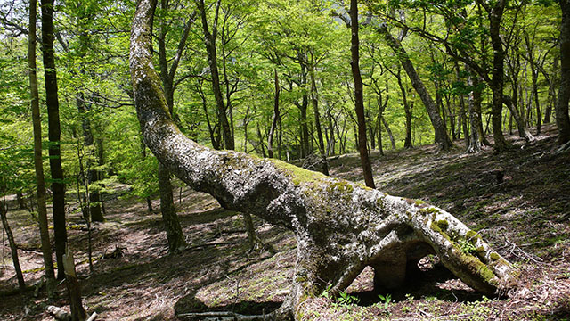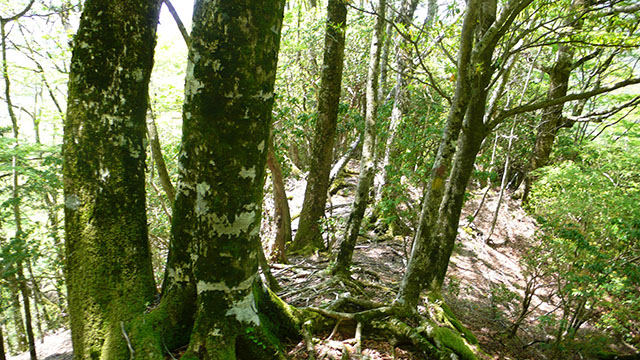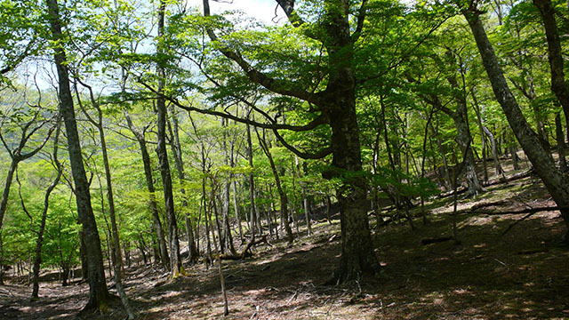 檜の植林地帯からブナなどの広葉樹林地帯へ