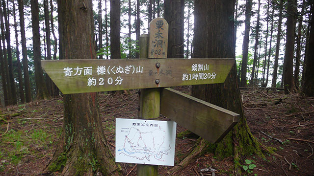 ツツジが見頃 歩き易い尾根道 最初の鎖場 茅ノ木棚沢ノ頭 2番目の鎖場 なだらかなブナの林 鍋割峠 真新しい木の階段 注意看板が撤去されてしまった 誰も居なかった 後沢右岸ルート入口 後沢の左岸ルート入口 栗ノ木洞 開けた櫟山の頂上 立派すぎる林道 車道工事中 お茶畑 畑の中のショートカット道