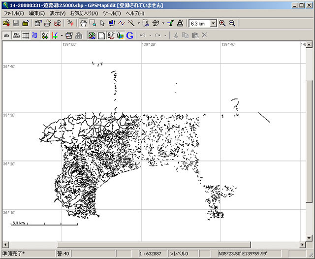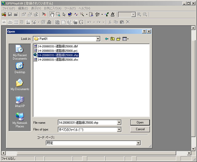 GPSMapEditorはかなり高機能で、様々な処理が出来るようだがまだ使い方が今イチ良く分からないので、とりあえずShapeファイルを読み込んで一旦Polish形式に変換した後、cGpsMapperでイメージファイルとして書き出すまでの処理を順を追って説明する.(GPSMapEditorの日本語の表記は今イチ意味不明なので、英語の表記のままの方が良いかも)