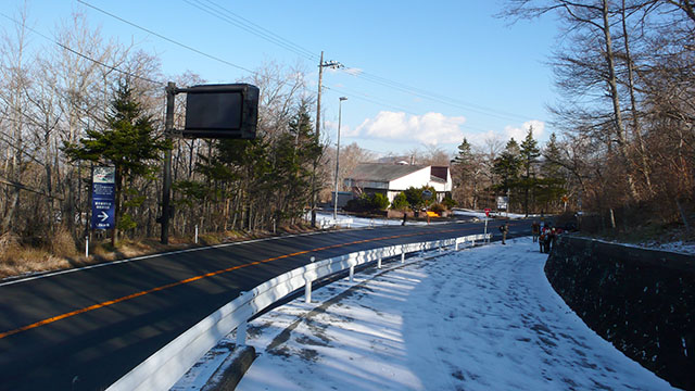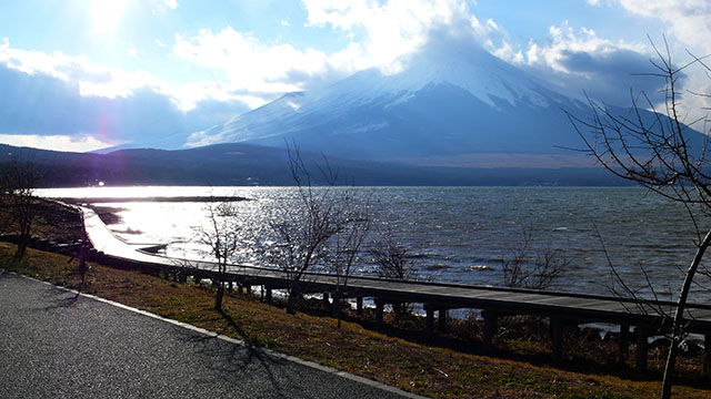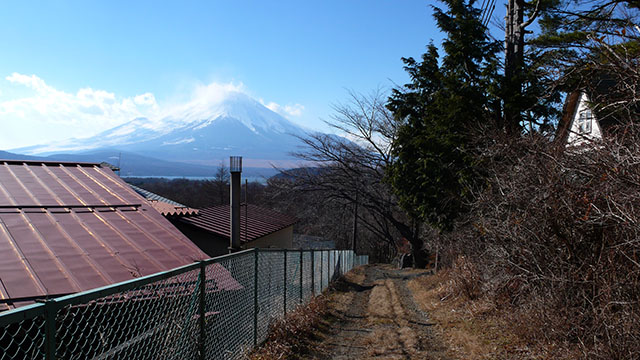 高指山から東海自然歩道の本線に沿って麓の平野へ下り、石割の湯で一汗流してから平野のバス停へ向かったが、丁度良いバスの便がなかったので山中湖畔を1/4周して旭が丘のバス停まで歩く事にした.のんびり湖畔を散策したかったが、雪がちらついて寒かったので山中湖交流プラザきららにちょこっと立ち寄っただけでそそくさと旭が丘のバス停へ向かった.